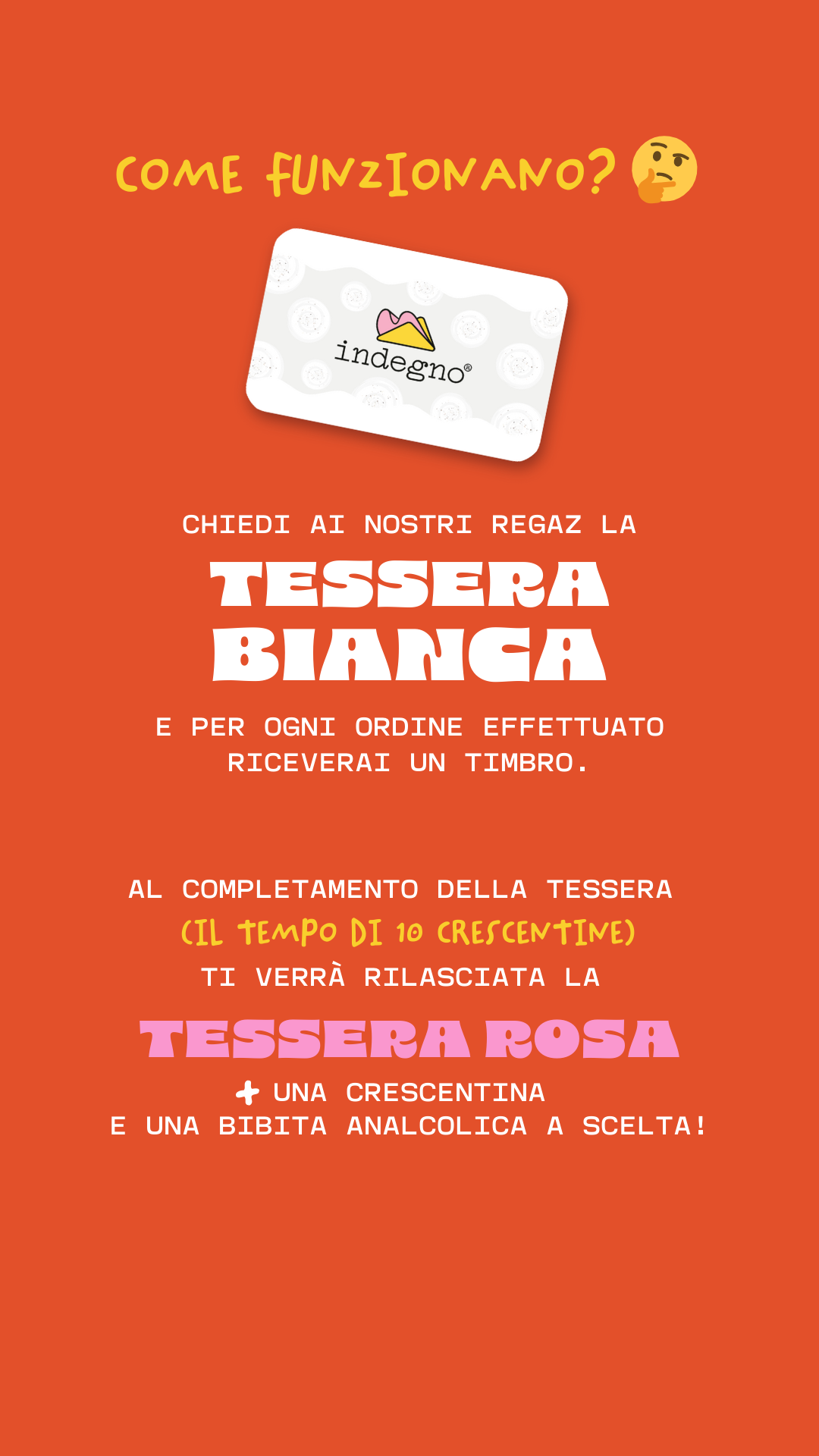 (un timbro a scontrino, si può richiedere sull'acquisto di almeno una crescentina) e quando verrà terminata, si otterrà un premio e la tessera successiva: